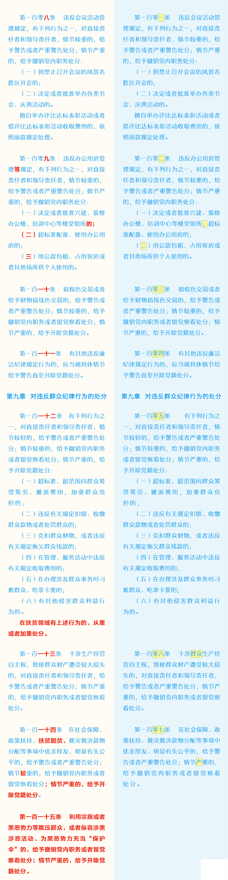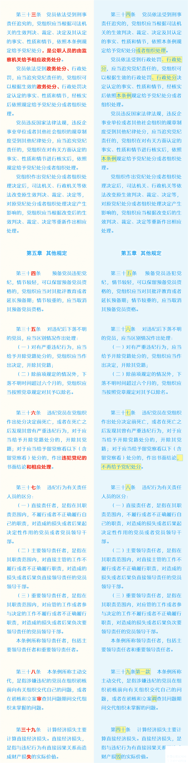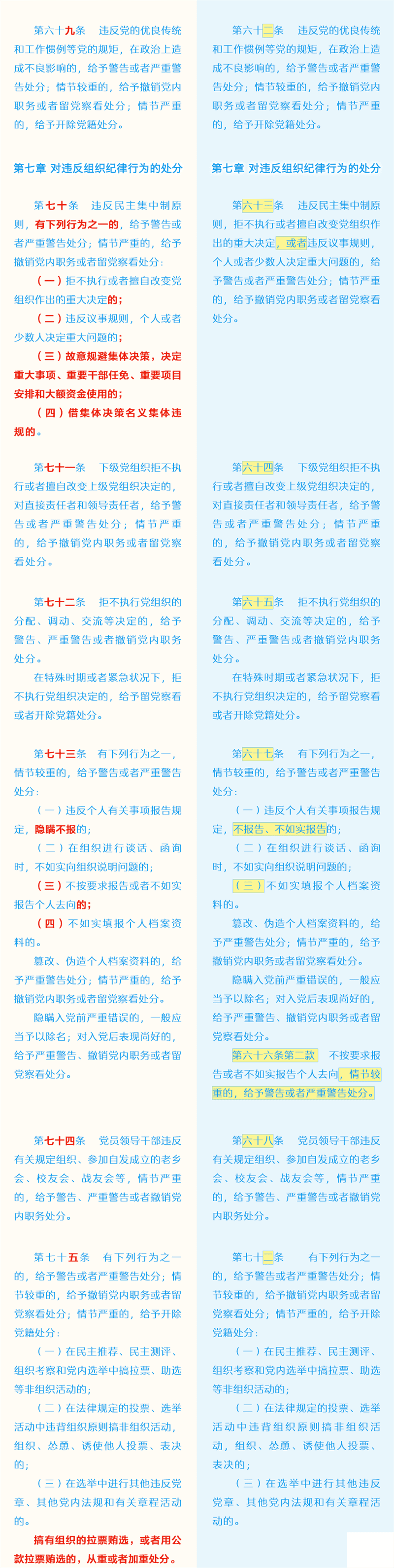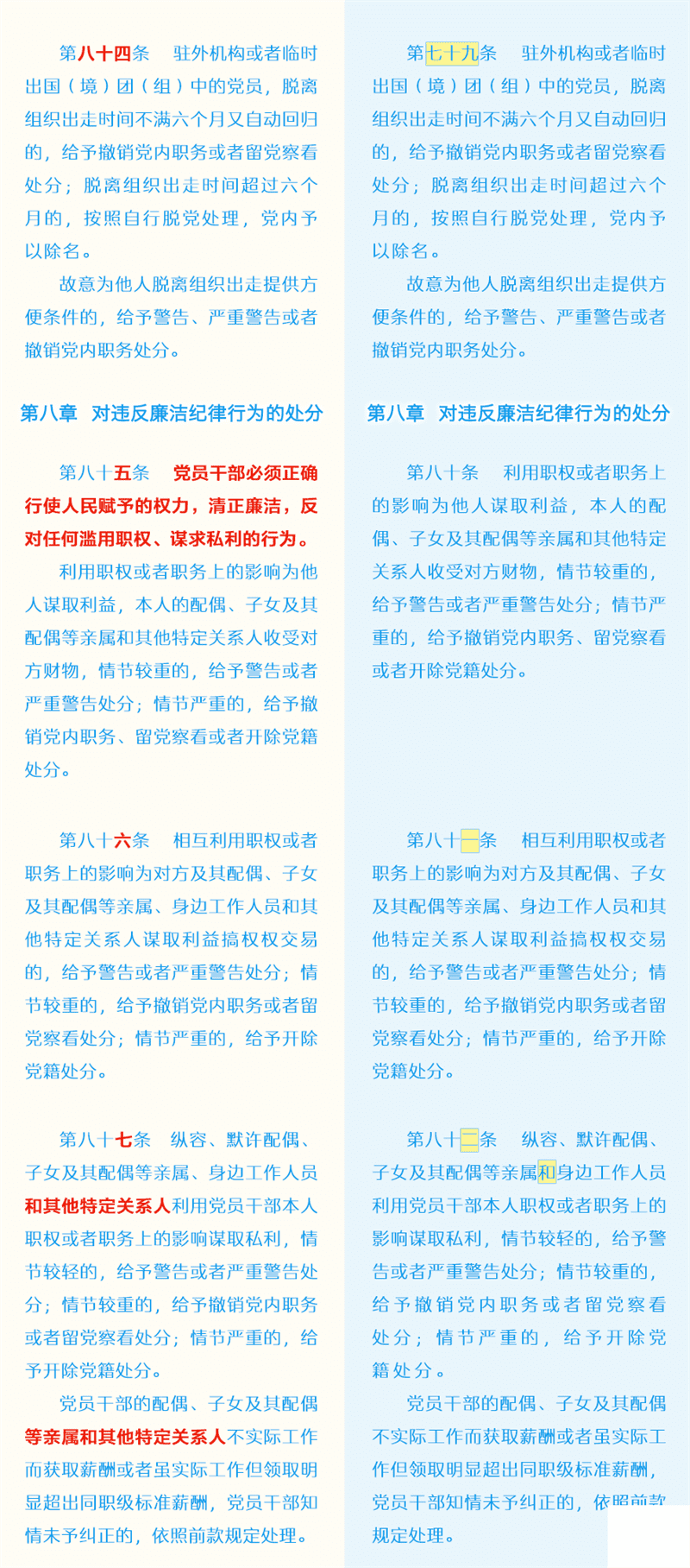 新舊《中國共產(chǎn)黨紀律處分條例》對比