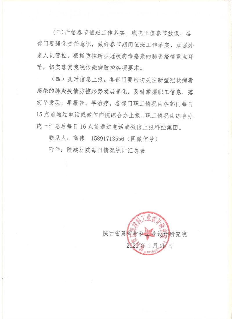 陜建材院關(guān)于做好新型冠狀病毒感染的肺炎疫情防控工作方案