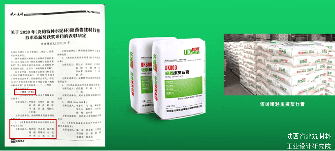 我院優(yōu)可班輕質抹灰石膏技術與應用榮獲陜西省建材行業(yè)技術革新獎一等獎