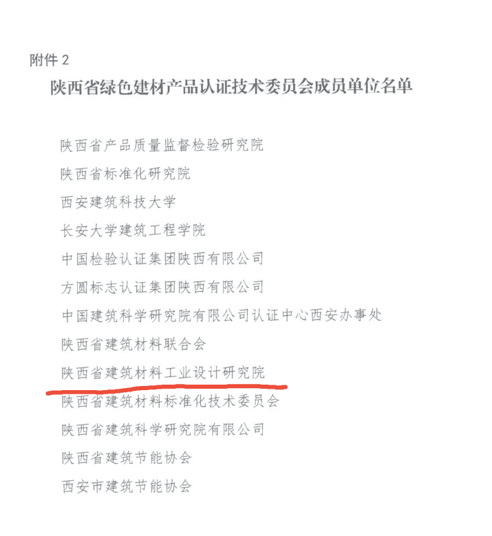 2021年4月14日,由陜西省市場監(jiān)督管理局、陜西省住房和城鄉(xiāng)建設(shè)廳、陜西省工業(yè)和信息化廳聯(lián)合印發(fā)了《陜西省綠色建材產(chǎn)品認(rèn)證實施方案》的通知(陜市監(jiān)發(fā)〔2021〕148號),根據(jù)該實施方案成立了陜西省綠色建材認(rèn)證工作推進組和全省綠色建材產(chǎn)品認(rèn)證技術(shù)委員會,我院成為十三家技術(shù)委員會成員單位之一。