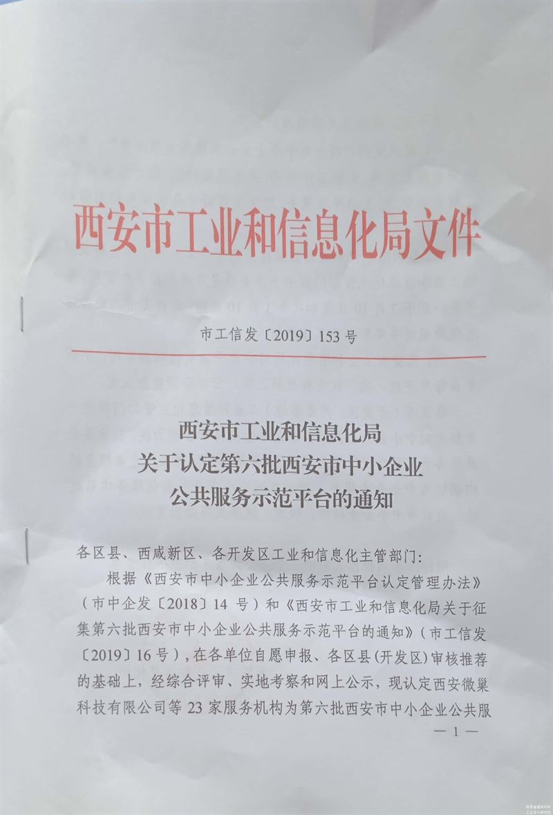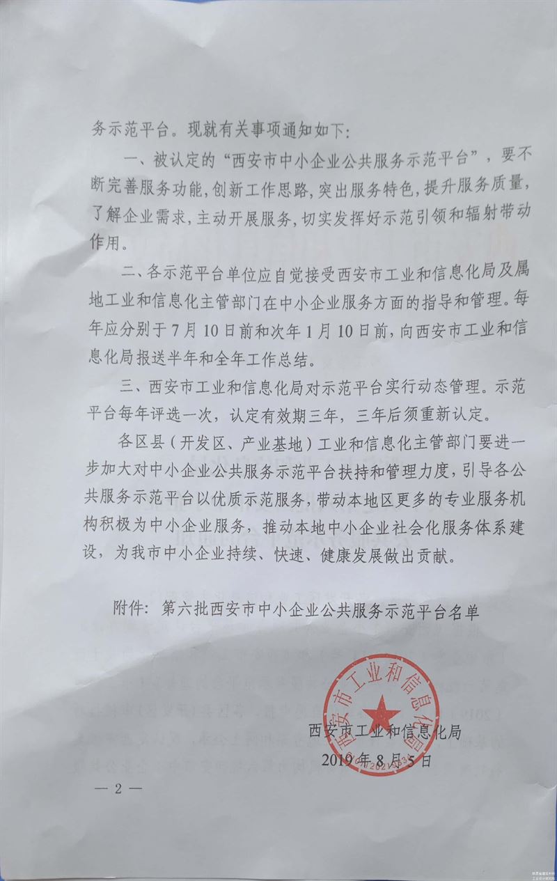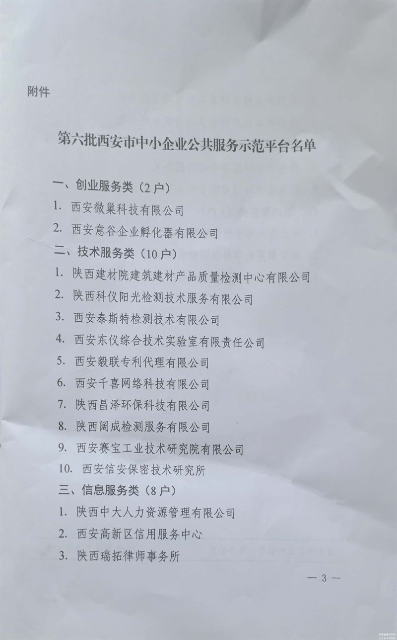 我院檢測中心榮獲第六批西安市中小企業(yè)公共服務(wù)示范平臺